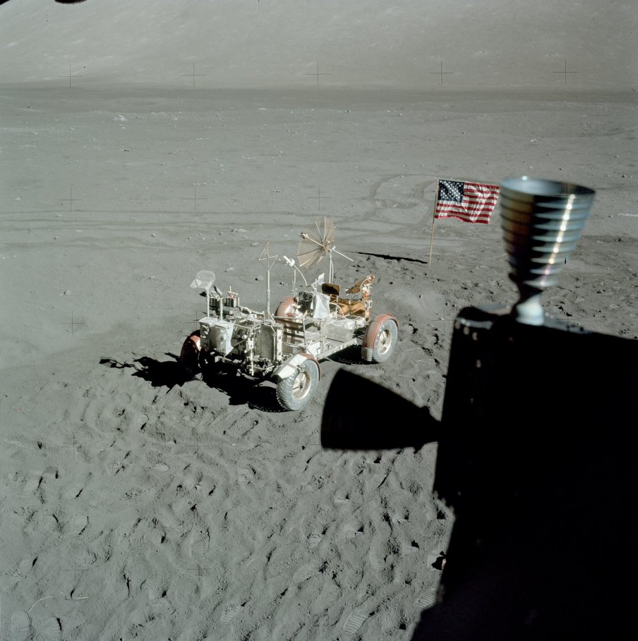 А чтобы три раза не вставать - колея не затоптана героями-астронавтами. Смотрим между колесами.