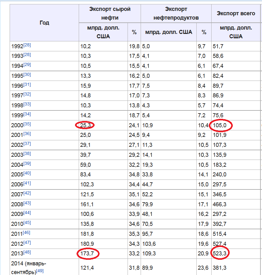 Обратите особенное внимание на то, что это - ТОЛЬКО НЕФТЬ! Здесь нет ни газа, ни алюминия и прочих металлов, ни древесины, ни остальных видов сырья, которое сотнями миллиардов тонн вывозилось из России на протяжении последних 16 лет. Очевидно, с целью сделать Россию ведущей экономикой! А как же иначе!