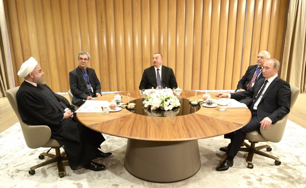 Встреча Президента Ирана Хасана Рухани, Президента Азербайджана Ильхама Алиева и Президента России Владимира Путина. Баку, 8 августа 2016 г. Источник: kremlin.ru.