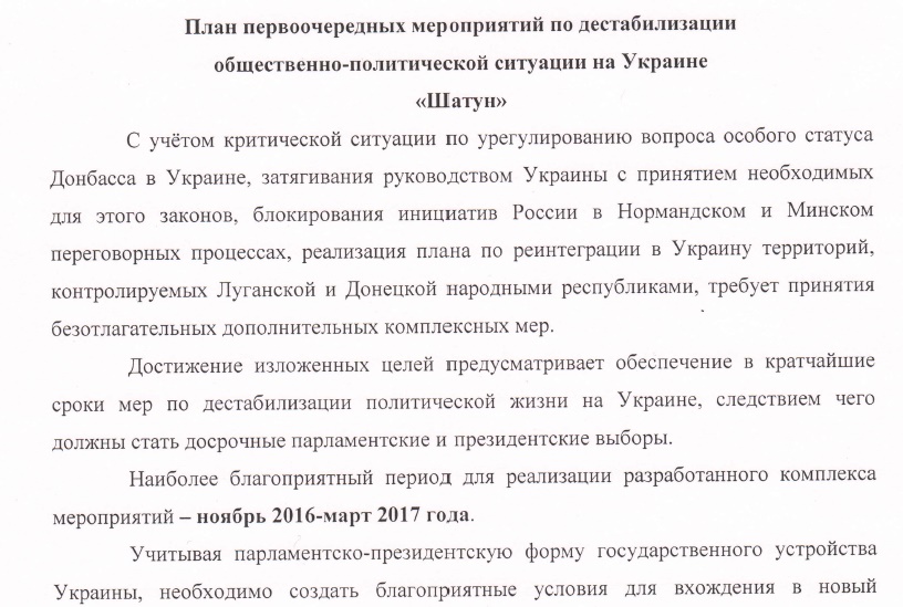 План первоочередных мероприятий по дестабилизации общественно-политической ситуации на Украине