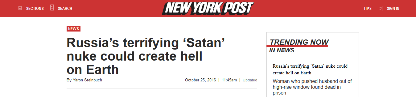 "...путинская "Сатана" сотрет с лица Земли все восточное побережье Америки!" [западные издания пугают читателей новым российским чудо - оружием]