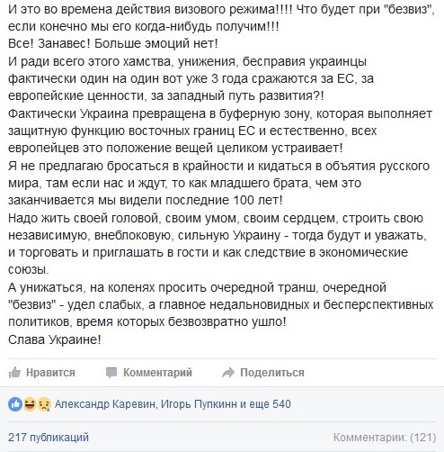 И ради всего этого хамства, унижения, бесправия украинцы фактически один на один вот уже 3 года сражаются за ЕС, за европейские ценности, за западный путь развития?!