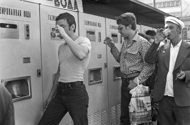 Граждане, заставшие Советский Союз, не только пожилые люди, но и молодые, всё еще помнят автоматы с газировкой, которые стояли по несколько штук на улицах с большой проходимостью, рядом с кинотеатрами и другими общественными местами. Чтобы попить газированной воды, надо было всего лишь опустить монету в прорезь и нажать на кнопку.