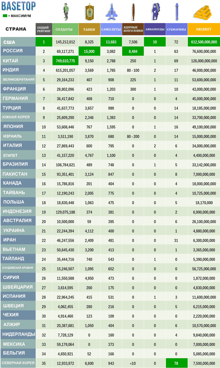 Таблица сравнения армий мира (Инфографика)