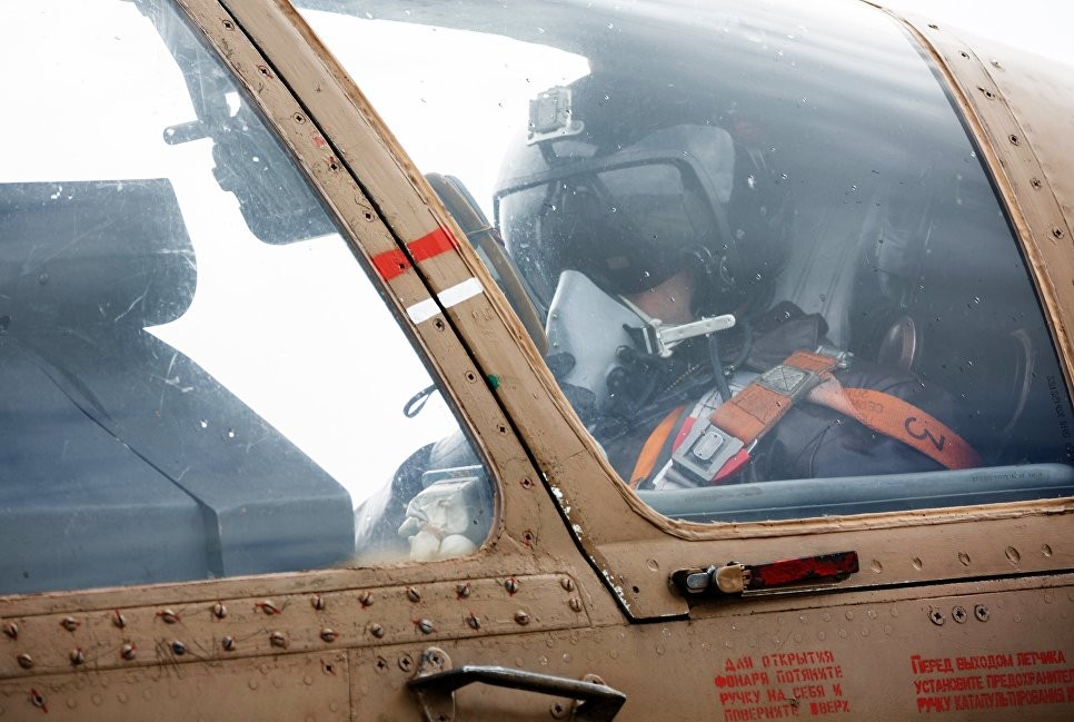 Пилот в кабине штурмовика Су-25 ВКС России на авиабазе Хмеймим в Сирии