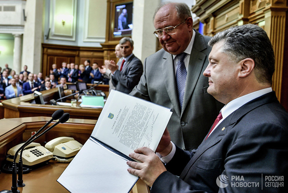 Петр Порошенко на заседании Верховной рады Украины в Киеве, на котором одобрен законопроект о ратификации Соглашения об ассоциации между Украиной и ЕС. 2014