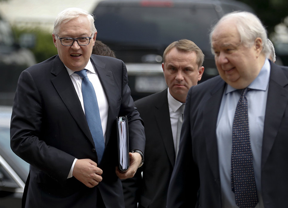 Заместитель Министра иностранных дел РФ Сергей Рябков и посол РФ в США Сергей Кисляк перед встречей с заместителем Госсекретаря США Томасом Шенноном в Вашингтоне. 17 июля 2017