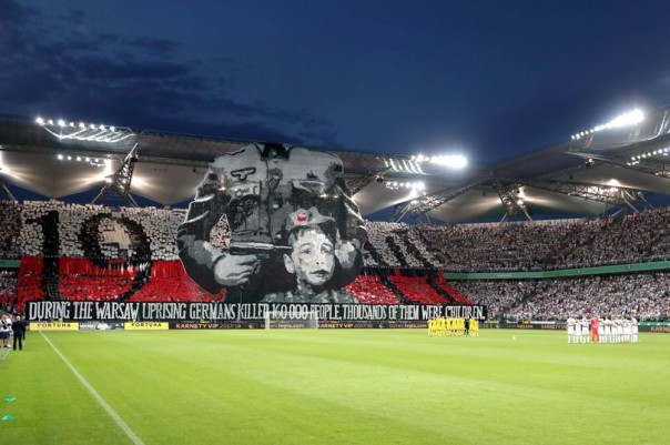 10. Польские болельщики на футбольном матче между польской «Легией» и казахской «Астаной» 1 августа (в годовщину начала восстания) вывешивают огромный баннер, обвиняющий Германию в убийстве 160 тысяч поляков, в том числе тысяч детей, во время подавления Варшавского восстания в 1944 году. Понятно, что это не низовая инициатива, а часть действий польских властей.