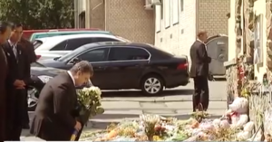 Ну, а раз отмашку на уничтожение гражданского авиалайнера дал президент, то кто же убийца ни в чём не повинных трёхсот пассажиров, в том числе детей, этого авиалайнера? И вот этот человек, кстати, сам отец четверых детей, идёт к посольству страны, самолёт которой был сбит по его приказу, преклоняет колени, кладёт цветочки, типа, скорбит по убиенным, им же… Это что? Где пределы цинизма?!