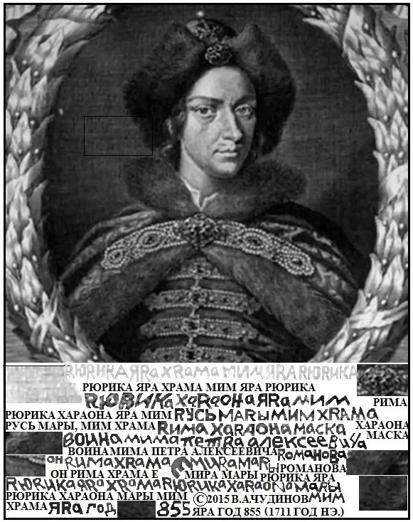 «Утверждается, что Пётр I, по воспоминаниям современников, разительно изменился после возвращения из Великого посольства. Как доказательство подмены приводятся портреты царя до и после возвращения из Европы. Утверждается, что на портрете Петра до поездки в Европу у него было удлинённое лицо, вьющиеся волосы и большая бородавка под левым глазом. На портретах царя после возвращения из Европы у него было круглое лицо, прямые волосы и отсутствовала бородавка под левым глазом. Когда Пётр I вернулся из Великого посольства, ему было 28 лет, а на его портретах после возвращения ему на вид было около 40 лет. Считается, что царь до поездки был плотного телосложения и выше среднего роста, но всё же не двухметровым гигантом. Вернувшийся же царь был худощав, обладал очень узкими плечами, а его рост, что установлено совершенно точно, составлял 2 метра 4 сантиметра. Столь высокие люди были большой редкостью в то время».