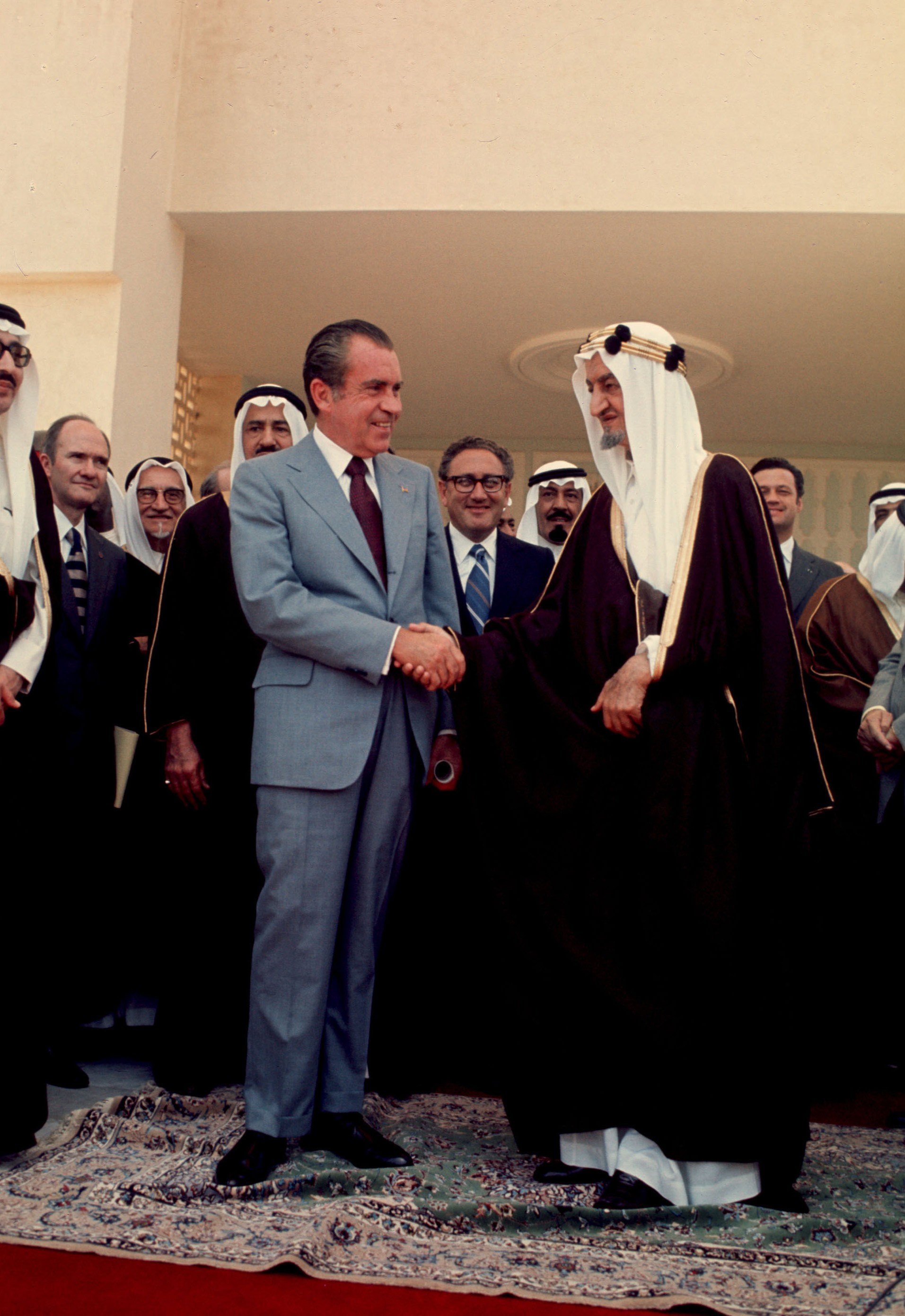 Американский президент Ричард Никсон жмет руку королю Саудовской Аравии Фейсалу ибн Абдул-Азиз Аль Сауду, 1974 год