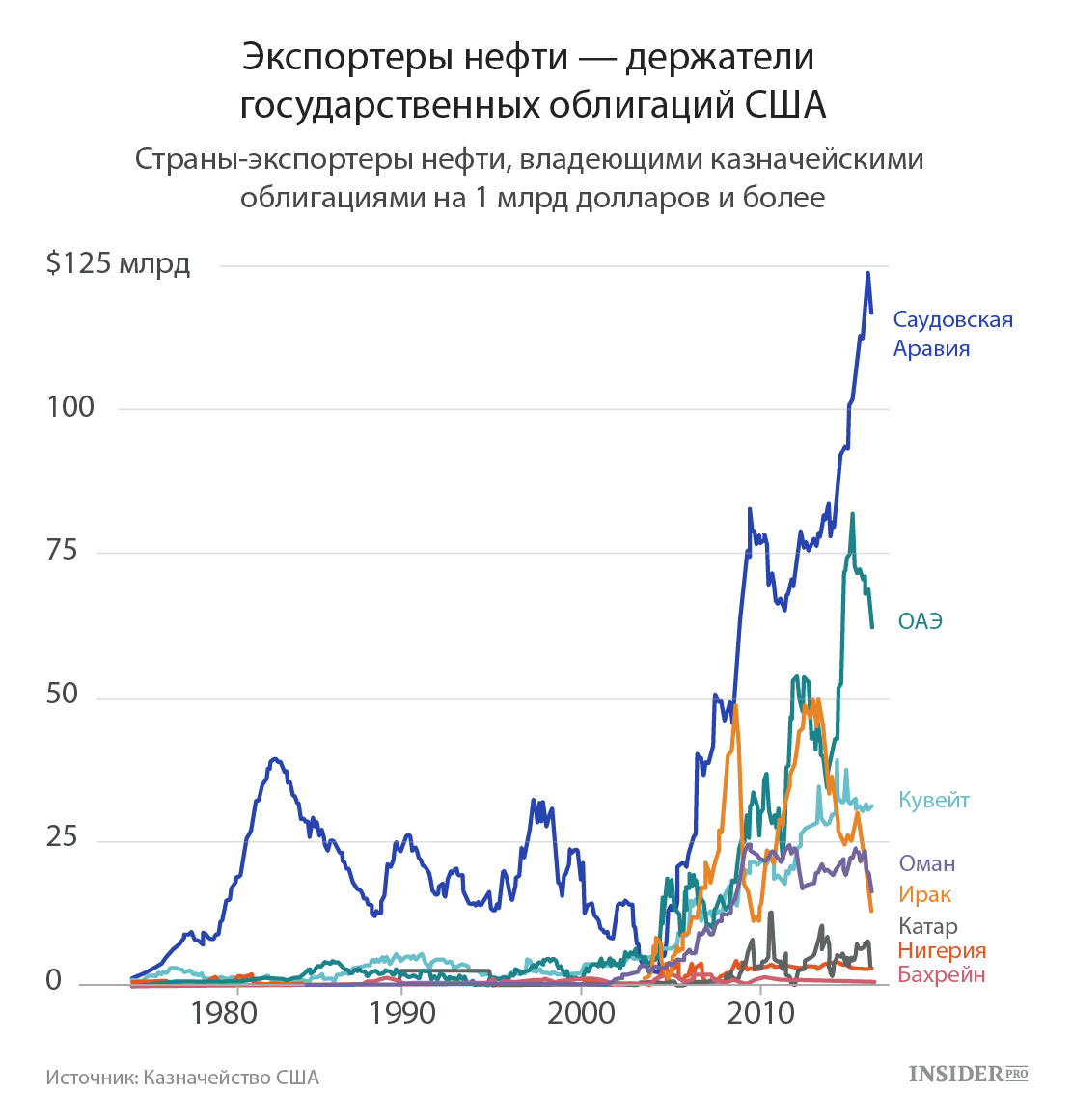 Если верить Дэвиду Спиро из Колумбийского университета и его книге «Невидимая рука американской гегемонии. Возвращение нефтедолларов и международные рынки» (The Hidden Hand of American Hegemony: Petrodollar Recycling and International Markets), Саудовская Аравия является владельцем 20% всех долговых обязательств США, обращающихся за границей.