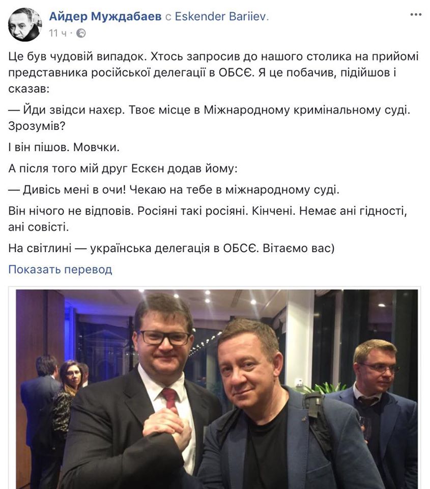 В качестве вишенки на торте, дающем понимание того, во что превратились все эти мероприятия и чего стоят их "докладчики" - очень сальная история от Муждабаева. Рассказанная им самим в Фейсбуке и сорвавшая шквал аплодисментов: