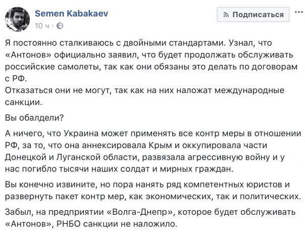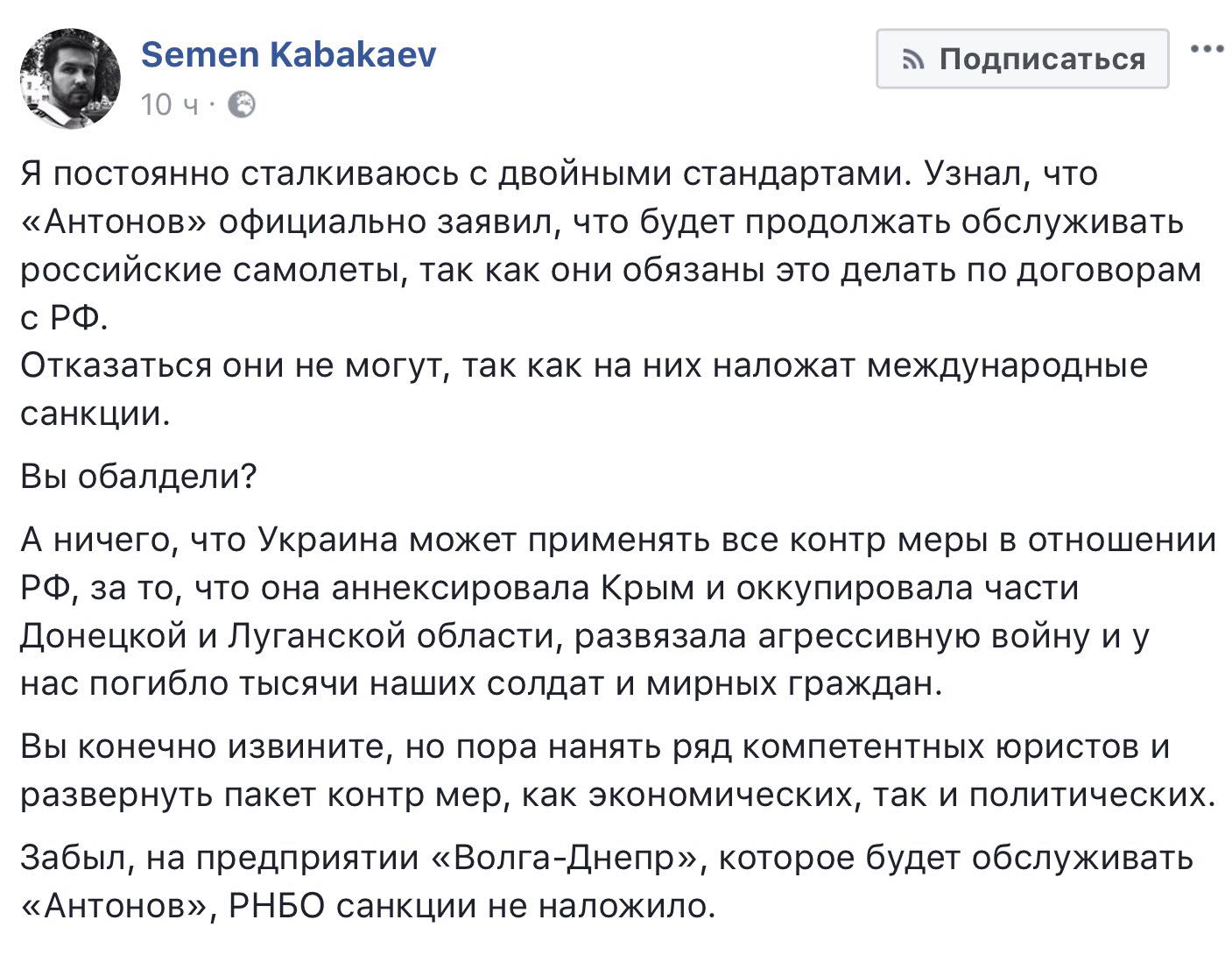 У маленьких украинских «патриотов» просто истерика в связи с тем, что «Антонов» подтвердил, что выполнит работы для российской авиакомпании «Волга-Днепр».