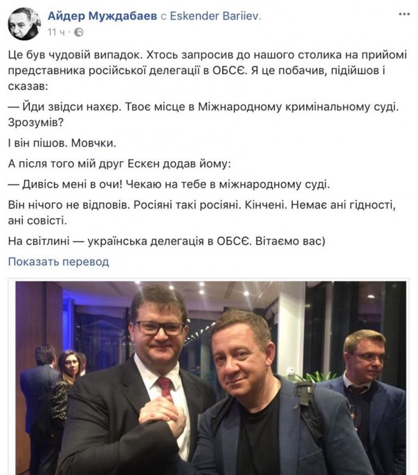 Кстати, весьма примечательно, что мероприятие, на которое не допустили настоящих крымчан, и где активно поливали грязью Россию ублюдки типа Муждабаева, носило название "Роль свободных СМИ в комплексном подходе к безопасности". Видимо, под "свободным СМИ", единственным, вещающим "правду" о Крыме, в ОБСЕ считают ислямовский АТР. Тот самый, который находится в Киеве, ежедневно поливает грязью Россию и рассказывает о "зверствах оккупантов".