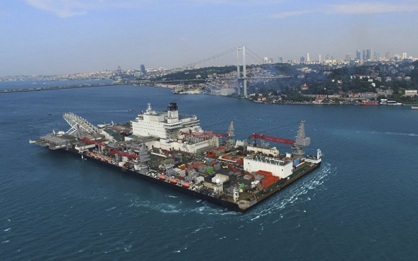 Судно Pioneering Spirit пересекает пролив Босфор в Стамбуле. Архивное фото.