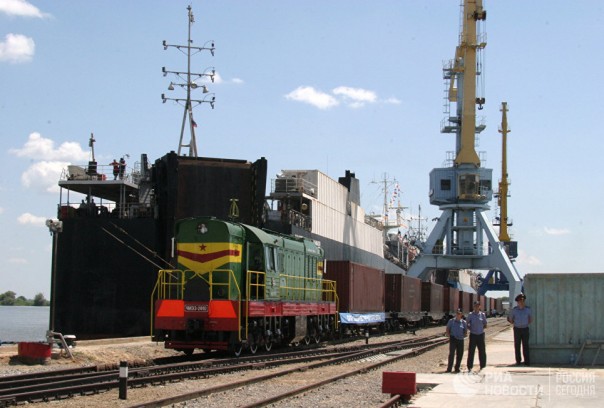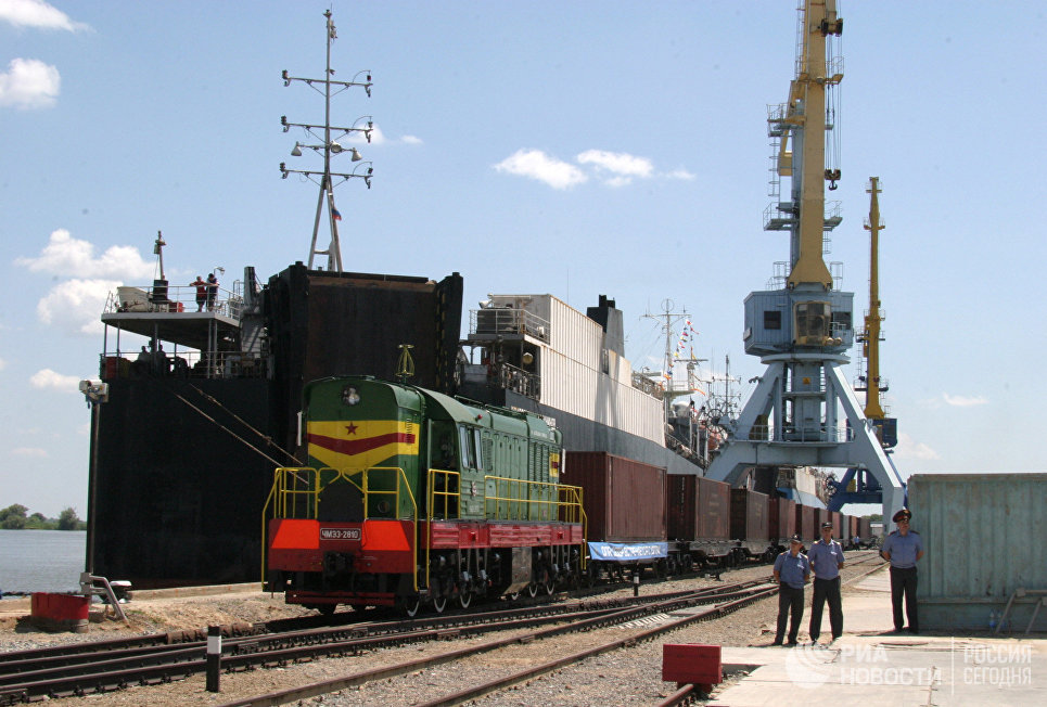 Конечный пункт на российской территории международного транспортного коридора "Север-Юг" - порт Оля Астраханской области