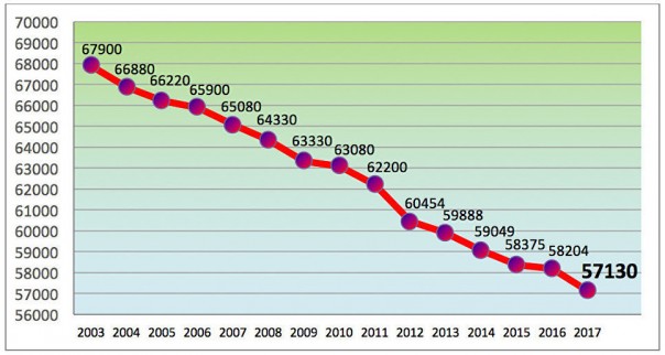 Численность населения Нарвы в 2003-2017 годах