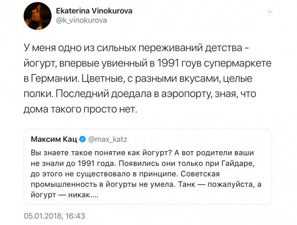 Но, к счастью, большинство из нас это пережили. Но, на фоне ужаса выживания в первое постсоветское десятилетие, пришло чёткое понимание, что именно мы потеряли.