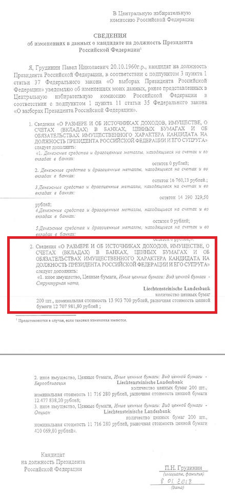 Итак, согласно сведений, представленных Грудининым в ЦИК, у него имеется три пакета ценных бумаг (еврооблигации, структурные ноты и опционы), по 200 штук в каждом пакете.