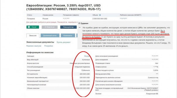 Указанная сумма номинала облигации в 11 716 280 рублей примерно соответствует номиналу в 200 000 долларов. Но помножив на сегодняшний курс, сумма у нас "не бьётся".