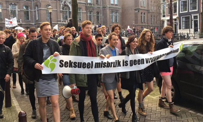 В столице Королевства Нидерланды представители сильного пола вышли на митинг в поддержку женщин. Из-за новогодних происшествий в Кельне, когда мигранты насиловали немецких девушек. Голландские мужчины решили таким образом поддержать не только немецких, но и своих представительниц прекрасного пола.