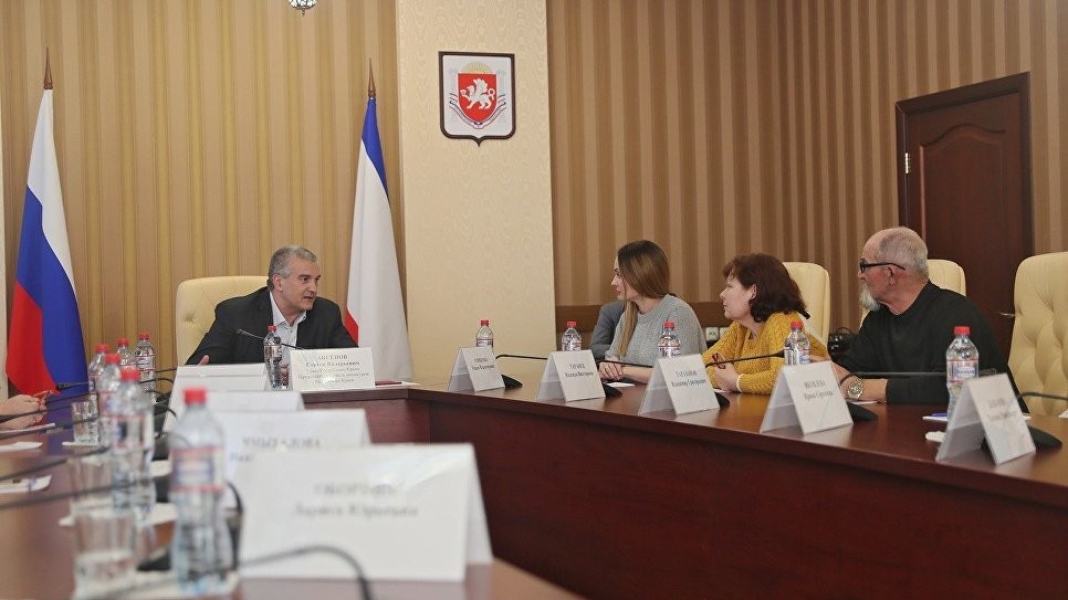 Глава Крыма Сергей Аксенов встретился с родственниками арестованного украинскими пограничниками крымского рыболовецкого судна "Норд". 6 апреля 2018