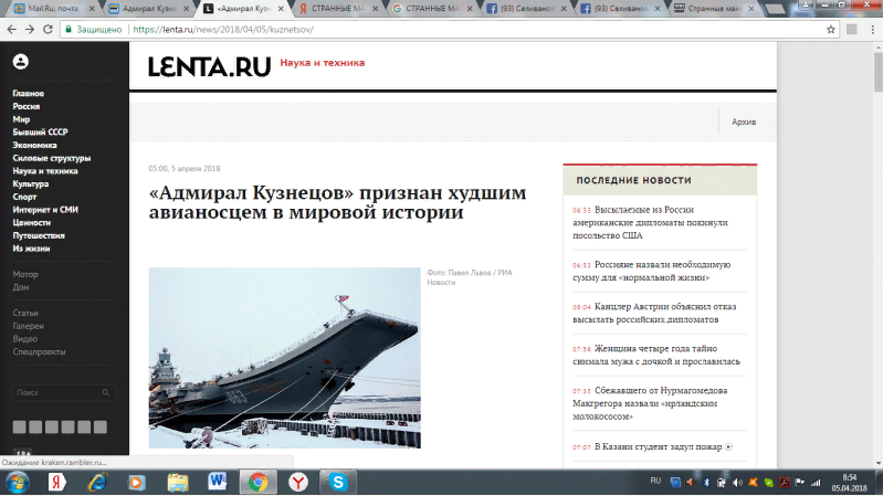Любой человек, имеющий хотя бы отдаленное отношение к флоту, наверняка помрет со смеху от перевода вполне грамотного «deployed to the Mediterranean» (развертывался в Средиземном море) фразой про корабль, который туда «выезжает», как какой-нибудь автобус с туристами. Таков вполне плинтусный уровень общей «грамотности» тех, кто ежедневно бомбит многомиллионную российскую аудиторию фейками, подобными вышеуказанному.