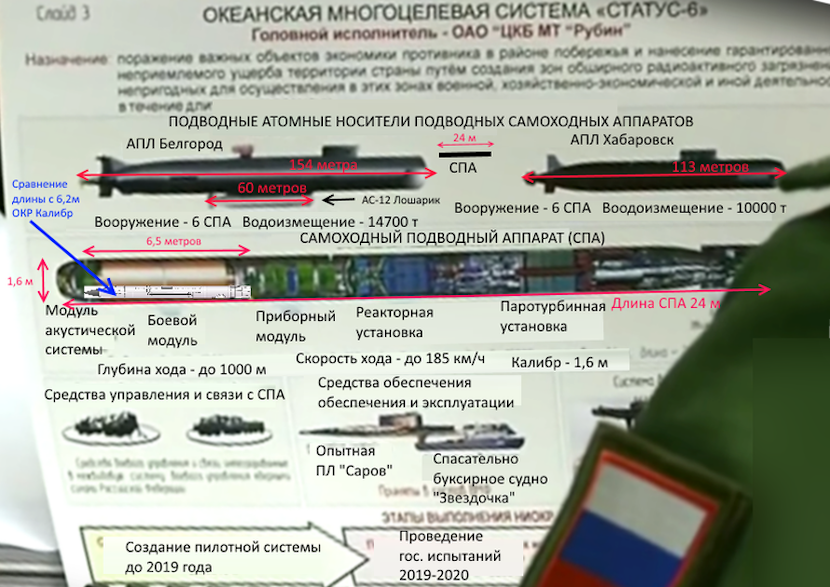 "Недавно Владимир Путин заявил, что Россия разрабатывает ядерную торпеду, которая может уничтожить все ядерное оружие США.Такое устройство, если оно будет взорвано в нужном месте, может создать цунами высотой 300 футов(91,44 метра). Американские военные эксперты назвали это русское оружие «оружием судного дня». Хотя, Путин не назвал наименования устройства, но, похоже, это «океаническая многоцелевая система статус-6», также известная как Каньон или « машина конца света Путина"- так начинается статья, опубликованная сегодня британским The Businessinsider.