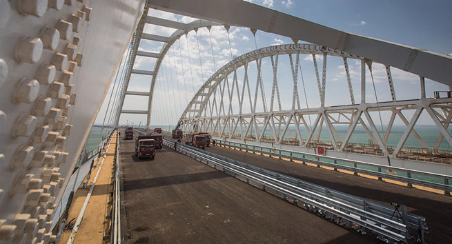 Подобная истерика была бы логична для украинской "политической журналистики". В Киеве давно мечтают захватить Кубань до самой Камчатки, снести Кремль, истребить всех русских, а Крымский мост, раз уже он построен и не развалился (во что украинцы до сих пор не до конца верят), забрать "в счет репараций".