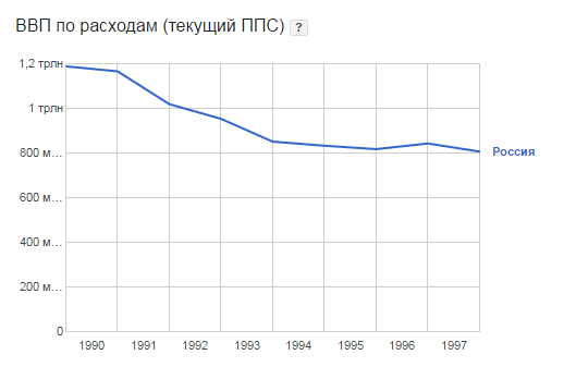 Кроме того, на руках у населения было по разным подсчетам от 15 до 50 млрд долларов. А чтоб эти бумажки оказались на руках, из страны ведь что - то вывезли. То есть, Запад напечатал водяные знаки на бумаге, покрасил их краской и стал за эти бумажки вывозить ресурсы из России.