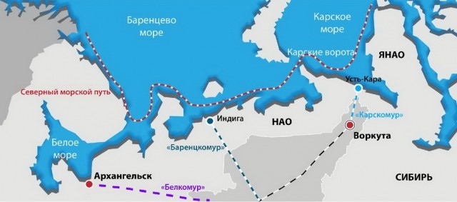 Более того, модернизацией архангельского порта планы не ограничиваются, «проект строительства железнодорожной магистрали “Белкомур” может получить некий “зонтик”, который может раскрыться в высокоширотной части Арктической зоны РФ: Архангельск–Ненецкий автономный округ–Мурманская область», отметил И. Орлов. По его мнению, новую железную дорогу «нужно завершать как минимум в трех крупных портах – Мурманске, Архангельске и Индиге. А я бы еще добавил туда Нарьян-Мар и, через Северный широтный ход, Сабетту». Получается действительно масштабно.