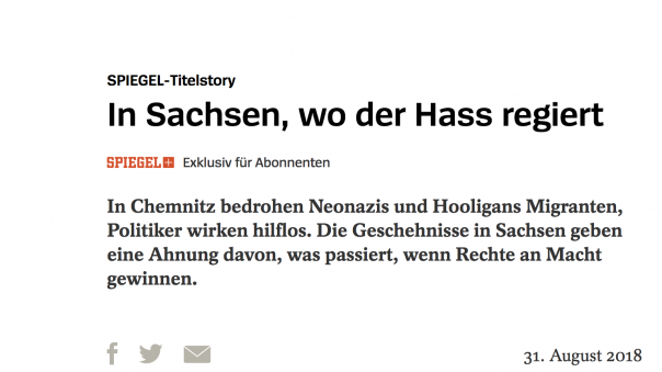 Так, издание Spiegel в статье «В Саксонии, где царит ненависть» называет вышедших на протесты людей неонацистами и хулиганами, которые несут угрозу мигрантам.
