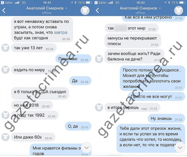 Переписка Рослякова с его бывшей одноклассницей, с достаточно характерными пассажами еще за полтора года до финала.