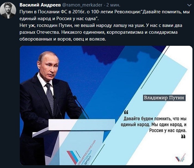 Причём про это «мы и они» пан Шевченко заговорил буквально через пару дней после эфира с Костей Сёминым (который, кстати, раньше заявлял, что «с КПРФ не дружу, жу-жу-жу», а теперь встречается с их политтехнологом и пиарщиком). С тем самым Костей Сёминым, который усиленно проталкивает то самое «два Отечества», взятое из геббельсовских агиток. Совпадение? Не думаю.