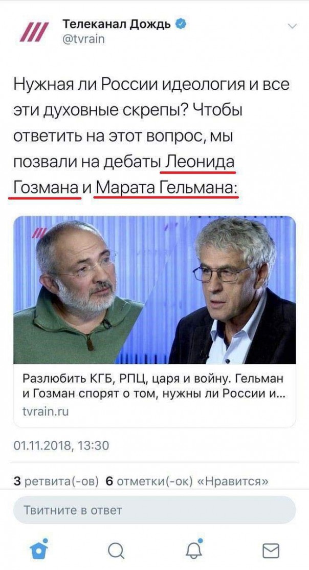 Вот и российский телеканал «Дождь» пригласил, вне сомнений, самых идеологических и духовных «русских» людей, для обсуждения достаточно важной темы