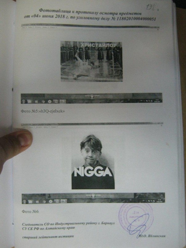 Поводом для возбуждения уголовного дела против Мотузной-Фроловой стали не картинки сами по себе, а письменные жалобы двух студенток Российской академии народного хозяйства и государственной службы (РАНХиГС, Барнаульский филиал), оскорбившихся «мемасиками» Фроловой во ВКонтакте.