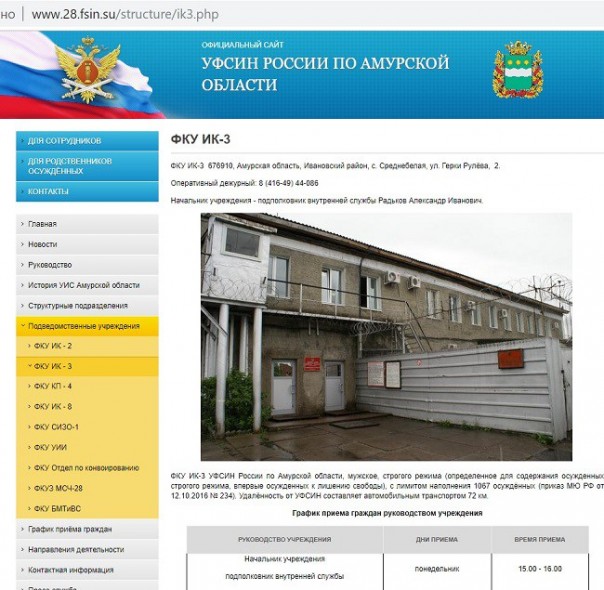 Ну, а теперь небольшое разоблачение. А, может быть, даже и помощь следователям и Генпрокуратуре. Итак, колония строгого режима ФКУ ИК-3 по Амурской области, где пировал Цеповяз, находится в селе Среднебелая, которое явно не родина крабов, а ближайший ресторан, где можно заказать крабов и икру, в Благовещенске, то есть в 70 километрах от зоны. Но это я даю чисто географическую информацию для тех правозащитников, которые нам про заказ в колонию из ресторана рассказывают. На самом же деле, заказ продукции из ресторана в ФКУ ИК-3 по Амурской области не предусмотрен и в качестве услуги отсутствует на официальном сайте УФСИН. Правозащитник Бабушкин явно перепутал исправительную колонию с обычным СИЗО. Бывают ошибки. Даже в СПЧ.