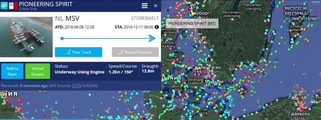 Трубоукладочное судно Pioneering Spirit на всех парах заходит в Балтийское море. По данным навигационного портала Marinetraffic, крупнейший в мире трубоукладчик вошел в датские воды и в ближайшие дни окажется у берегов Германии в Балтийском море.
