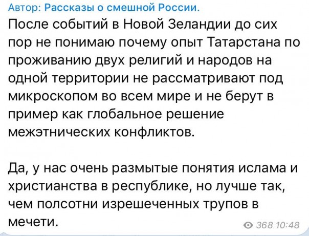 То, что сегодня случилось в Новой Зеландии - это следствие всего того, чем занимались США долгие годы. Страх, порождающий ненависть, ощущение того, что белый человек, некогда чувствовавший себя господином и царём природы, теряется среди толпы «иноверцев», порождает желание защитить свою привычную среду обитания от «нашествия сарацинов».
