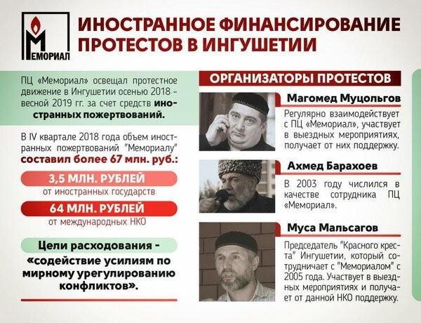 И, вот же ж случайное совпадение, все лидеры протестов в Ингушетии или как-то связаны с «Мемориалом», или даже прямо в нём состоят!