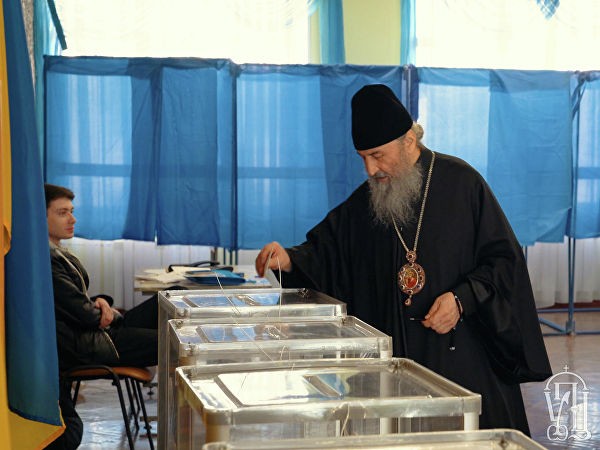 Голосование митрополита Киевского и всея Украины Онуфрия во втором туре президентских выборов на Украине. 21 апреля