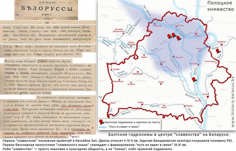 Для подтверждения связи балтов с белорусами создаются карты с указанием топонимов и гидронимов балтского происхождения. Приводим пример с сайта «Краткая история Беларуси»
