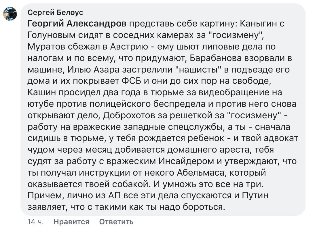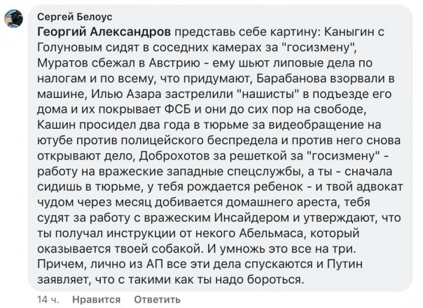 Ведь сколько бы вы, адекватные и справедливые, не выступали за ту же справедливость, на каждого из вас найдётся пара-тройка навальнистов-оппозиционеров, которые в любом случае смешают вас с грязью.