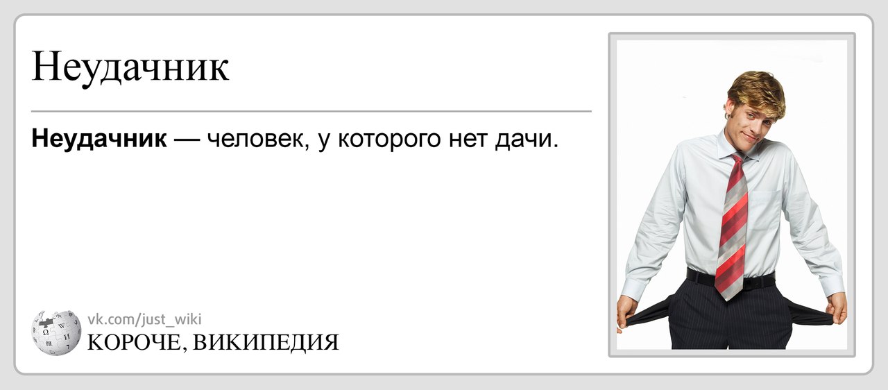 Я тут хочу дело одно открыть, может, получится… — «Ну и дурак, чем тебя вагоны разгружать не устраивает? Вот у меня был один знакомый, решил бизнесом заняться, посадили, квартиру за долги отобрали, тоже так хочешь?»
