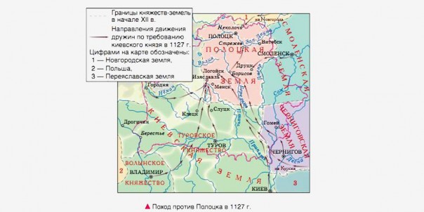 Справка. В начале XII века полоцкие князья отказались участвовать в общерусском походе против половцев. Тогда в 1127 последовал общерусский поход против Полоцка, который возглавил Мстислав Великий.