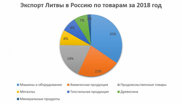 Кроме того, сохраняется и региональная экономическая взаимозависимость России и Литвы, которая сформировалась еще в период существования Советского Союза. По сей день Россия занимает первое место у Литвы по объему экспорта и импорта. В 2018 году экспорт Литвы в Россию составил 14% от общего объема и, по сравнению с 2017 годом, увеличился на 1,4% — до 3,974 млрд евро. Импорт страны из России обеспечил 14,8% общего объема и составил 4,58 млрд евро.