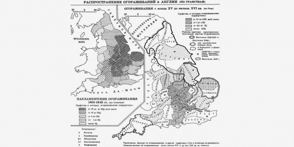 Так что в это время, наоборот, принималось множество государственных актов, препятствующих огораживанию, а сам процесс затронул всего несколько процентов земель. Массовое огораживание — гораздо более позднее явление, результат развития товарного сельского хозяйства уже в XVIII и XIX столетиях.