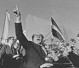 А поздней осенью судьбоносного 1959 года Яна Калнберзина сменил Арвид Янович Пельше (на фото слева). Опытный управленец, скрупулезный ученый-историк, работавший еще в наркомате той первой Советской Латвии, существовавшей с января по май 1919 года. На должность первого секретаря ЦК КПЛ Пельше заступил с должности секретаря по пропаганде и агитации.