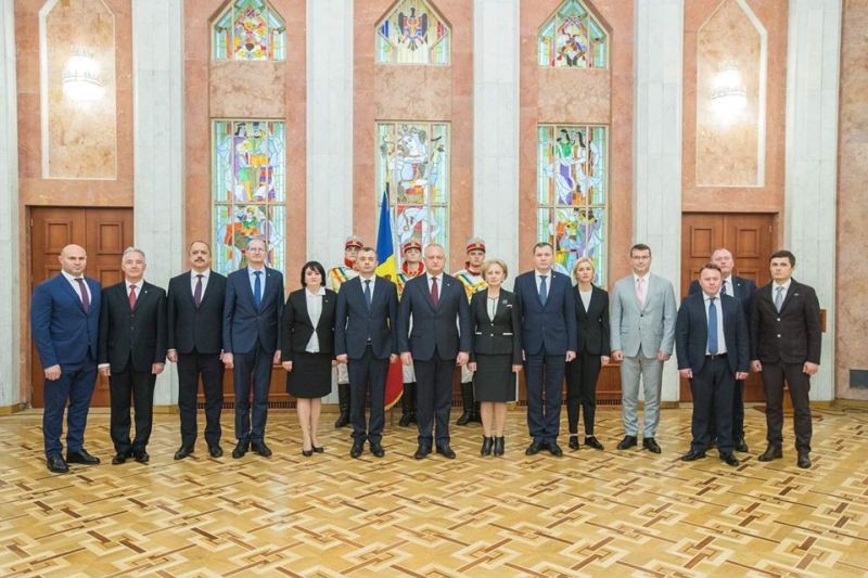 Президент Игорь Додон и спикер парламента Молдовы Зинаида Гречаный с новым правительством Иона Кику